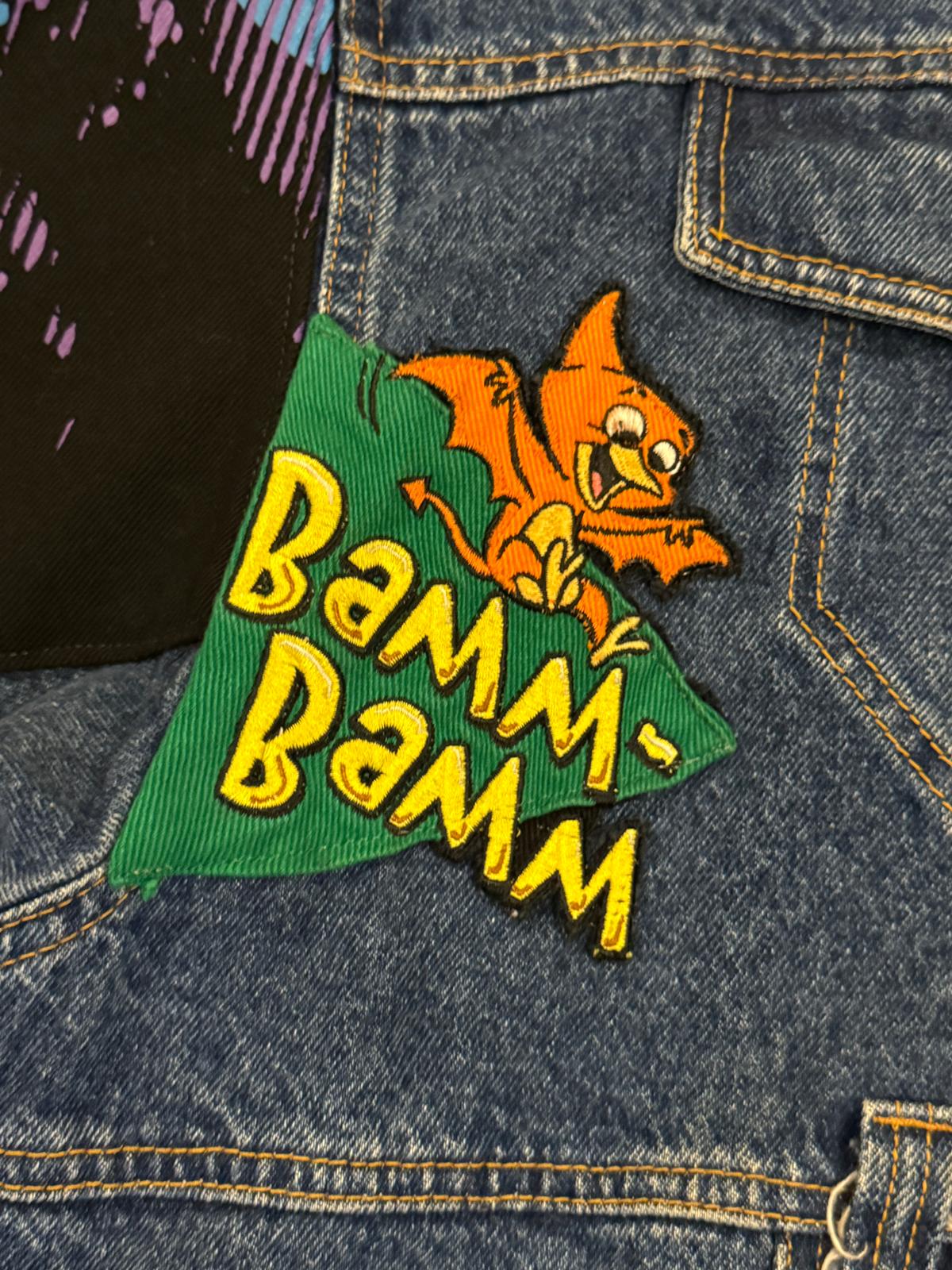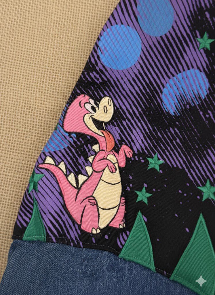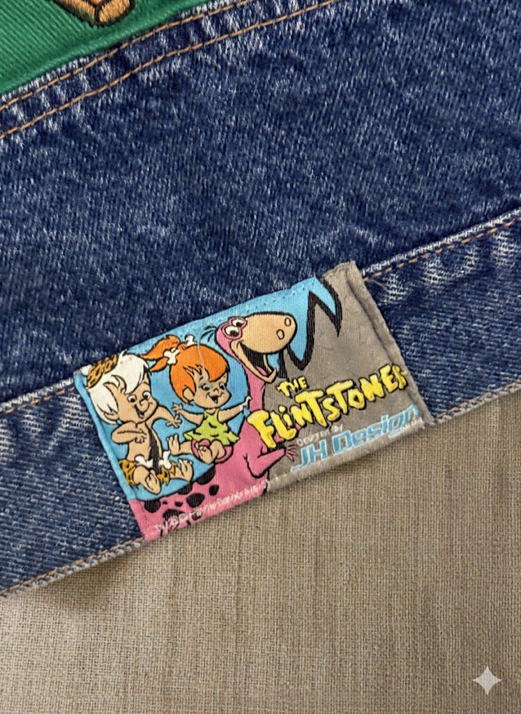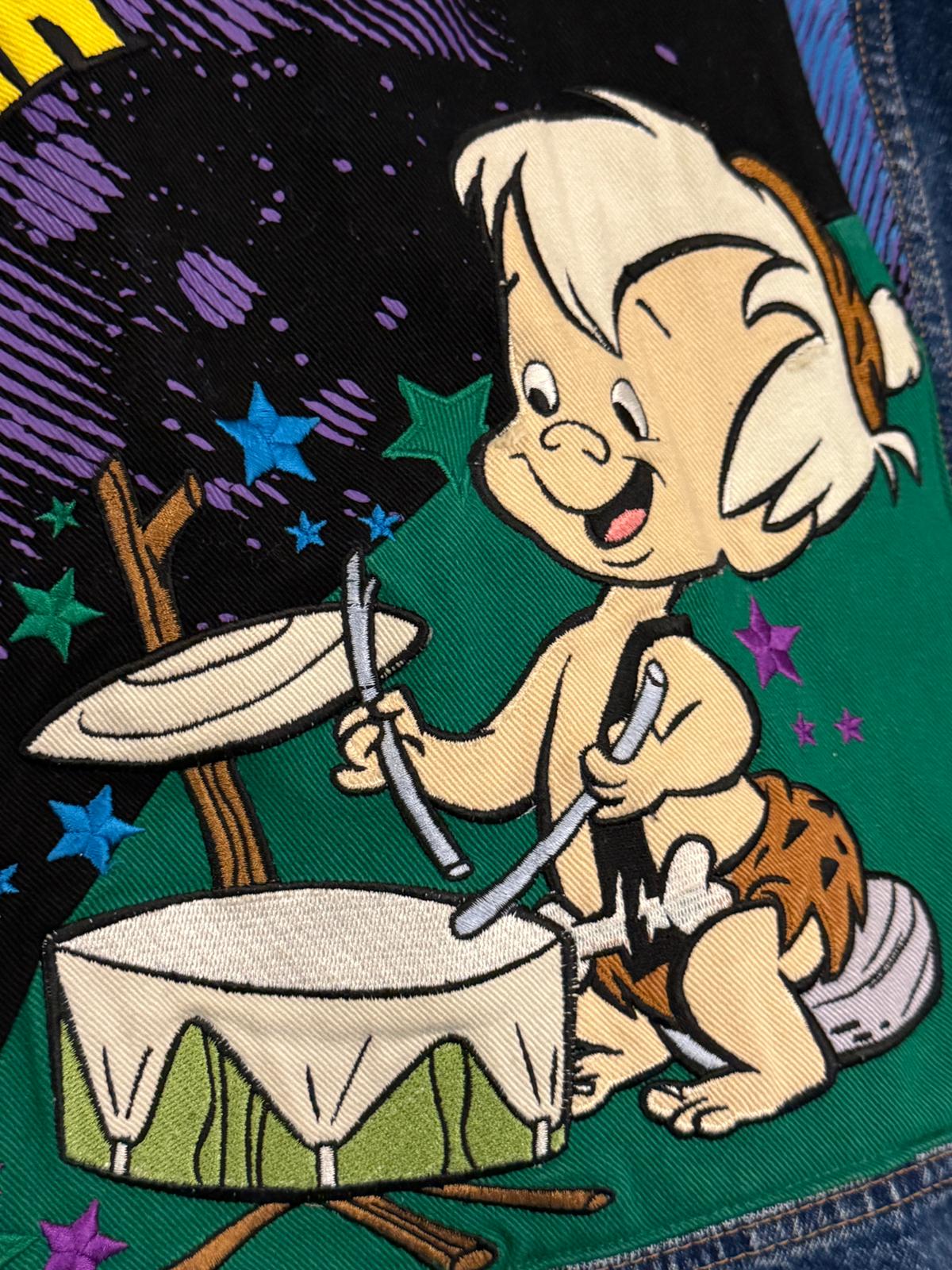 Jeff Hamilton marka orijinal The Flintstones temalı ceket ile Lee Cooper bomber kot ceket, el işçiliğiyle birleştirilerek yeniden tasarlandı.